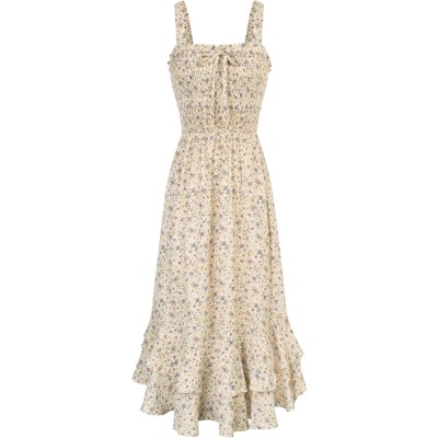 Women's Summer Floral Midi Tank Dress Sleeveless Strappy Ruffle Hem Smocked Bodycon Dresses