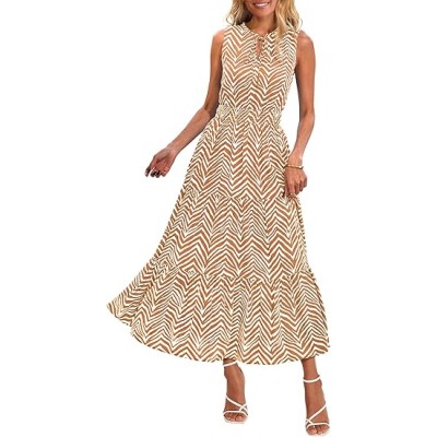 Womens Dresses Casual Sleeveless Bodycon Midi Dress Lapel V Neck Striped Long Summer Dresses for Women 2025