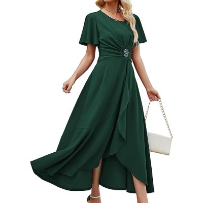 Wedding Guest Dresses for Women Have Pockets Cocktail Dress Ruffle Sleeve A Line Evening Party Formal Dresses for Women