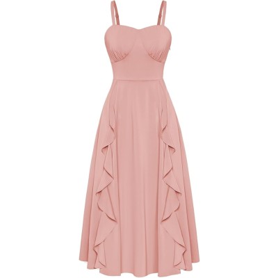 Sun Dresses for Women 2025 Boho Midi Dresses Casual Spaghetti Ruffle Dress Wedding Guest Dresses for Women