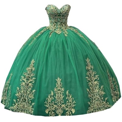 Gold Embroideried Quinceanera Prom Dress Sweetheart Ball Gown Satin Floor Length Corset 2023