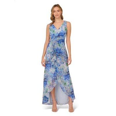 Women's Long Stretchy Sleeveless V-Neck Ruched Wrap Dress