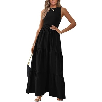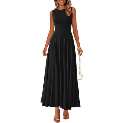 Womens Spring Dresses 2025 Casual Sleeveless Crewneck Aline Maxi Dress Stretch Tank Flowy Long Dresses