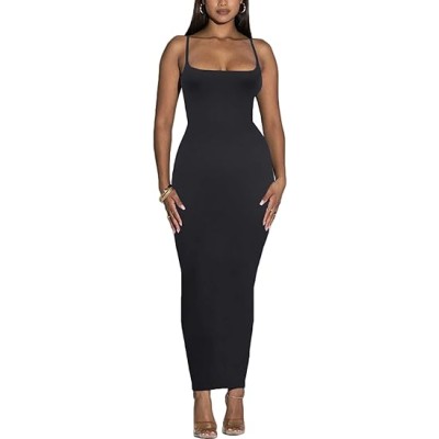 Women's Spaghetti Strap Bodycon Dress - Summer Casual Maxi Club Party Long Tight Slip Dresses