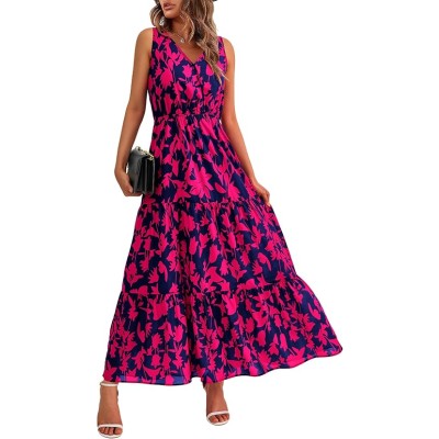Women Summer Dresses Casual Sleeveless Maxi Dresses Cute Floral Long Dress Wedding Guest Dress