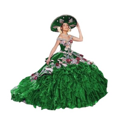 2025 V Neck 3D Floral Flowers Glitter Tulle Charro Quinceanera Prom Dresses with Cape Ball Gown