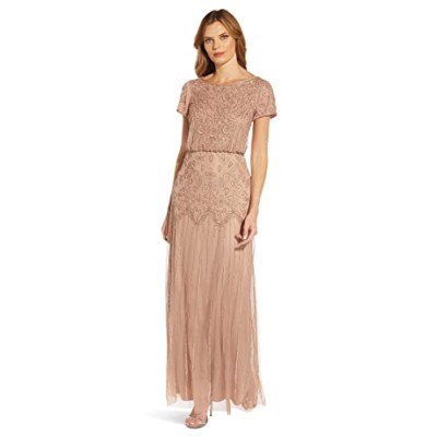 Women's One Size Boat Neck Short Sleeve Blouson Beaded Gown