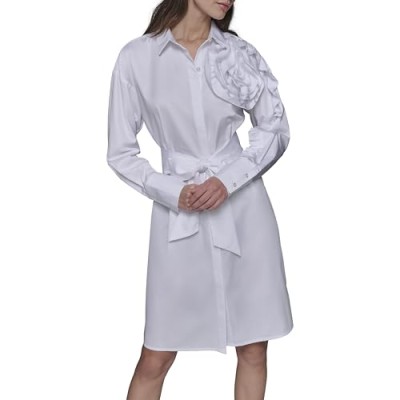 Women's Accent Button Up Long Sleeve Shirt Dress
