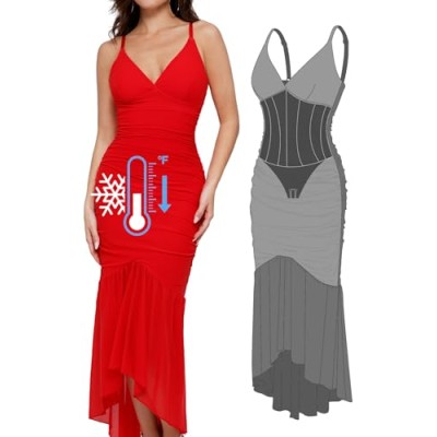 Corset Dress Built in Shapewear Bodycon Cocktail Dresses for Women Wedding Guest Deep V Neck Mesh Ruched Maxi Dress