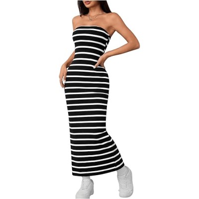 Women's Sleeveless Tube Top Sexy Strapless Bodycon Maxi Club Dress