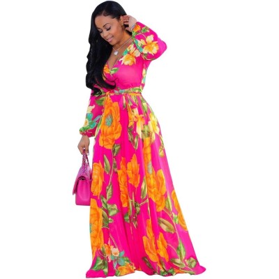 Summer Flowy Bohemian Dresses for Women 2024 Boho Floral V Neck Ruffle Hem Maxi Dress