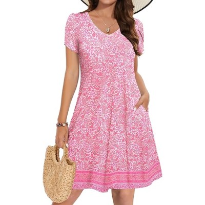 Zeagoo Womens Summer A-Line Dress with Pockets Mini Short Sleeve Dresses Flowy Beach Swing Dress 2025 Vacation Travel