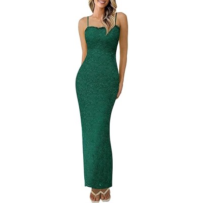 Women's Summer Wedding Guest Dress 2025 Spaghetti Strap Lace Floral Bodycon Formal Cocktail Evening Long Dresses