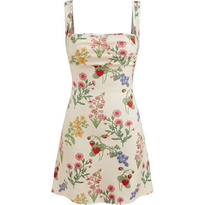 Women's Summer Floral Dress Square Neck Mini Dress Sleeveless Cute Sundress Party Dresses Trendy 2025