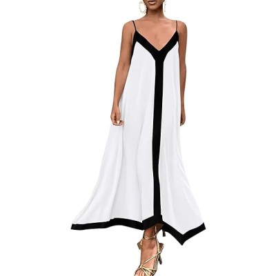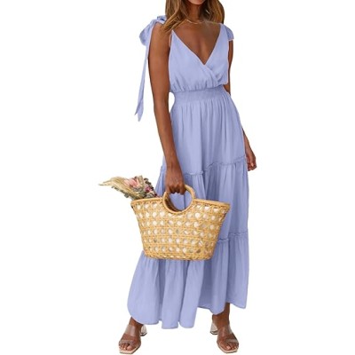Women's 2025 Summer Maxi Dress Sleeveless V Neck Spaghetti Strap Flowy Elegant Holiday Party Dresses