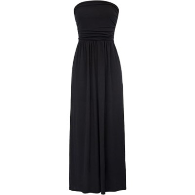 Women Strapless Casual Loose Ruched Long Maxi Dress with Pockets