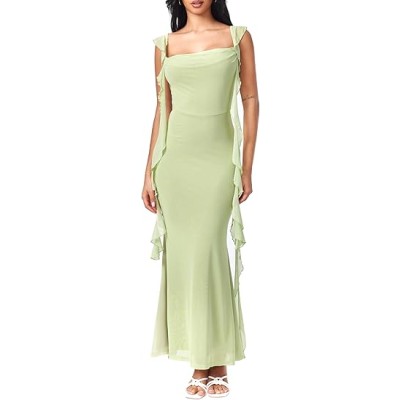 Formal Dresses for Women Wedding Guest Dresses Summer Maxi Dress Sleeveless Mesh Ruffle Cocktail Bodycon Dresses 2025