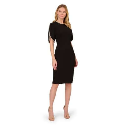 Women's Elegant Short Sleeve Midi Textured Semi-Sheer Fabric-Sophisticated Cocktail Dress