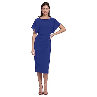 Women's Boat Neck Flutter Sleeve Dress Occasion Event Guest of