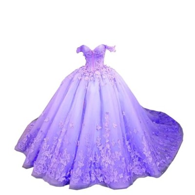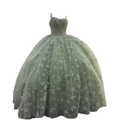 Cute 3D Butterfly on Lace Flower Embroidery Ball Gown Quinceanera Prom Dresses with Strap Sweet 16 Dress