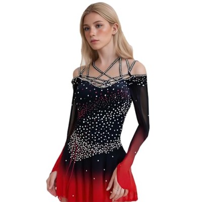 Ice Figure Skating Dress Gem Girls Long Sleeve Professional Competition Stage Show