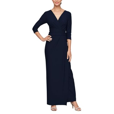 Women's Long Stretchy 3/4 Sleeve Cowl Neck Drape Back Gown