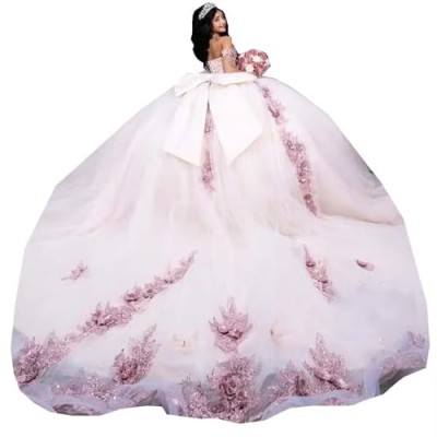 Modern Ball Gown Quinceanera Prom Formal Dresses Cocktail Homecoming Charro XV with Pink Butterfly