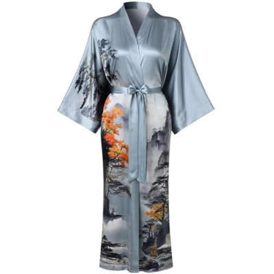 Women's Silk Kimono Robe Long Bathrobe Nightgown 100% Mulberry Silk for Women - Classic Floral Pattern