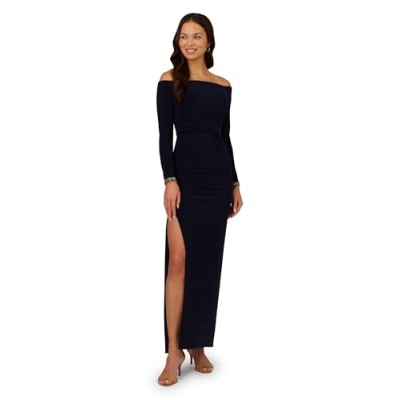 Women's One Size Boat Neck Short Sleeve Blouson Beaded Gown