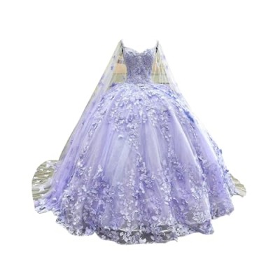 Modest 3D Floral Flowers Ball Gown Quinceanera Prom Dresses with Cape Corset 2025 Lace