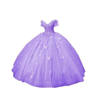 2025 Modern Ball Gown with 3D Floral Butterfly V Neck Off Shoulder Prom Evening Dresses Lace